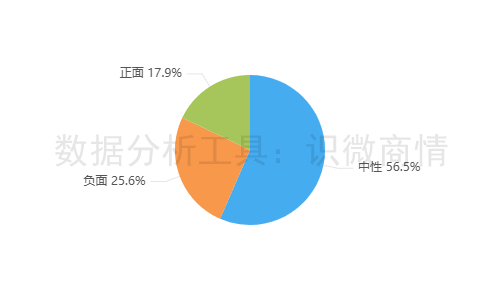 该时段内,有关“宗馥莉辞职事件”的舆情情感倾向以中性为主,占56.5%;其次为负面舆情,占25.6%。正面舆情较少,占17.9%。