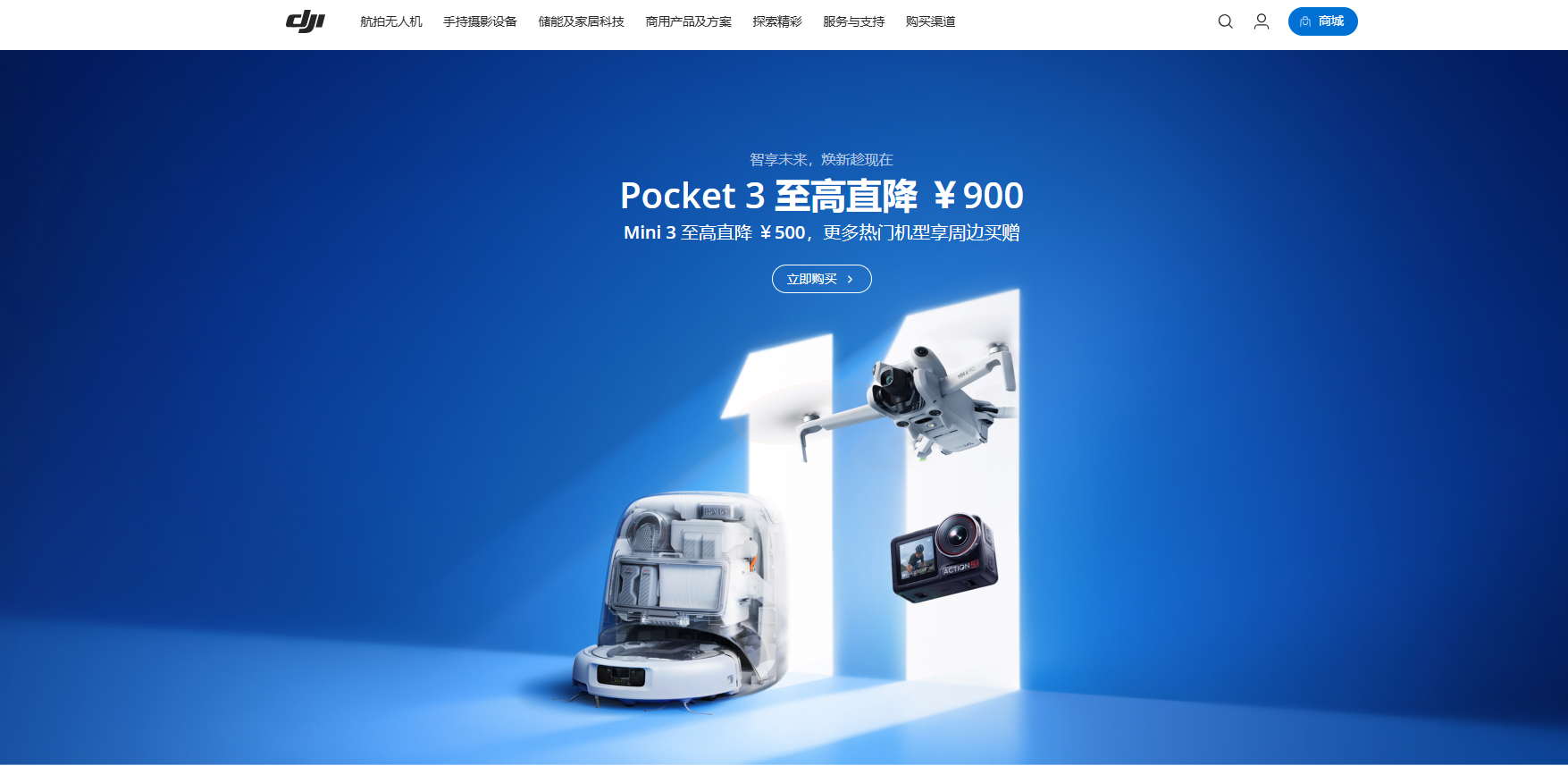 2025年10月8日,大疆在官网上(见下图)宣布自10月9日起对旗下多款产品进行大幅降价,覆盖云台相机、运动相机、无人机等品类,最高降幅超千元。例如,Osmo Pocket 3标准版直降700元至2799元,全能套装直降900元至3599元;Mini 4 Pro无人机直降1478元至5521元。