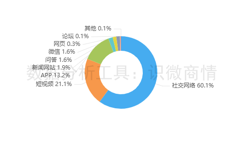 该时段内,有关“大疆降价引维权事件”的舆情主要集中在社交网络平台,约占60.1%,其次为短视频(约占21.1%),新闻APP(约占13.2%)。