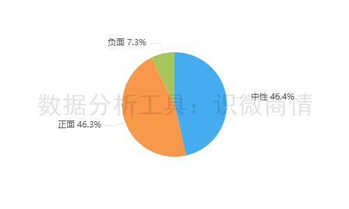 该时段内,有关“蜜雪冰城卖早餐事件”的舆情情感倾向以中性为主,占46.4%;其次为正面舆情,占46.3%。负面舆情较少,占7.3%。