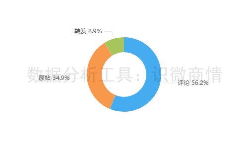该段时间内,有关“蜜雪冰城卖早餐事件”的舆情信息以评论为主,占56.2%;其次为原帖,占34.9%;转发较少,占8.9%。