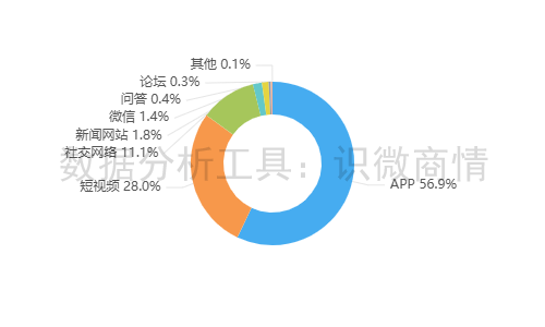 该时段内,有关“同仁堂南极磷虾油涉嫌造假事件”的舆情主要集中在新闻APP平台,约占56.9%,其次为短视频(约占28.0%),社交网络(约占11.1%)。
