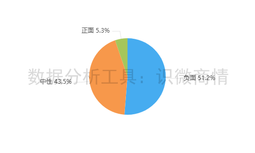 该时段内,有关“同仁堂南极磷虾油涉嫌造假事件”的舆情情感倾向以负面为主,占51.2%;其次为中性舆情,占43.5%。正面舆情较少,占5.3%。