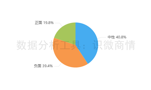 该时段内,有关“紫燕百味鸡店员偷减牛肉事件”的舆情情感倾向以中性为主,占40.8%;其次为负面舆情,占39.4%。正面舆情较少,占19.8%。