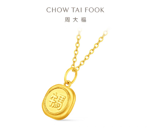 12月,知名黄金珠宝品牌周大福推出马年主题的系列产品,其中一款黄金吊坠,一面为牛与马汉字组合,另一面是拼音“jia”。