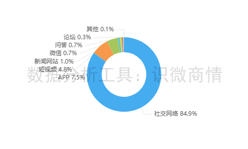 该时段内,有关“小米投放KOL争议事件”的舆情主要集中在社交网络平台,约占84.9%,其次为新闻APP(约占7.5%),短视频(约占4.8%)。