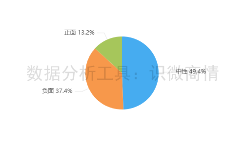 该时段内,有关“小米投放KOL争议事件”的舆情情感倾向以中性为主,占49.4%;其次为负面舆情,占37.4%。正面舆情较少,占13.2%。