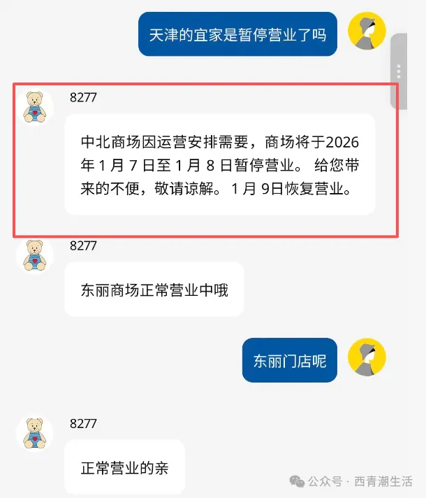 1月7日上午,宜家客服口径反复,初期否认大规模关店,仅称个别门店调整。