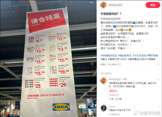 2026年1月6日,社交媒体开始流传宜家将关闭多家门店的消息,部分门店员工收到内部通知。