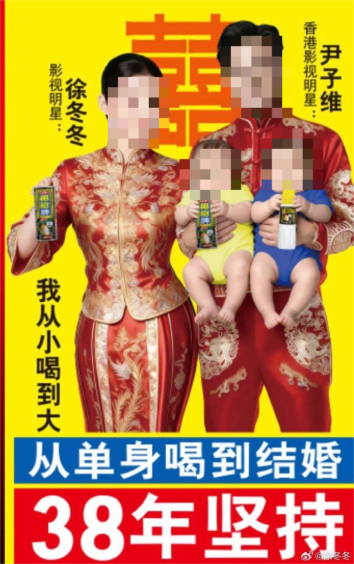 1月23日,婚礼限定款椰汁曝光,包装印双人喜服合影,尹子维抱两孩童,标注“从单身喝到结婚”。并预告“2月26日会优先抽取送给哈尔滨海南和广东网友”,并盛赞“王总很讲义气”,“椰树的所有领导,管理和人员在他的带领下都很重情义并很有能力”。