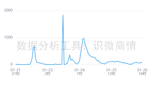 根据识微商情舆情分析系统(<<<点击免费试用)显示,2026年01月21日21时至2026年01月26日16时,有关“椰树推徐冬冬婚礼限定款”的舆情热度约为16,407。通过观察趋势可知,舆情于01月23日16时达到最高峰。