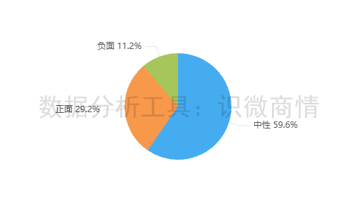 该时段内,有关“椰树推徐冬冬婚礼限定款”的舆情情感倾向以中性为主,占59.6%;其次为正面舆情,占29.2%。负面舆情较少,占11.2%。