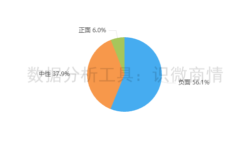 该时段内,有关“杰我睿事件”的舆情情感倾向以负面为主,占56.1%;其次为中性舆情,占37.9%。正面舆情较少,占6.0%。