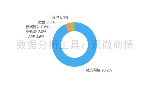 该时段内,有关“阿嬷手作推新品牌鑼獅”的舆情主要集中在社交网络平台,约占93.2%,其次为新闻APP(约占3.6%),短视频(约占2.0%)。