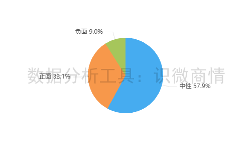 该时段内,有关“阿嬷手作推新品牌鑼獅”的舆情情感倾向以中性为主,占57.9%;其次为正面舆情,占33.1%。负面舆情较少,占9.0%。