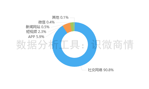 该时段内,有关“瑞幸咖啡错别字杯套事件”的舆情主要集中在社交网络平台,约占90.8%,其次为新闻APP(约占5.9%),短视频(约占2.3%)。