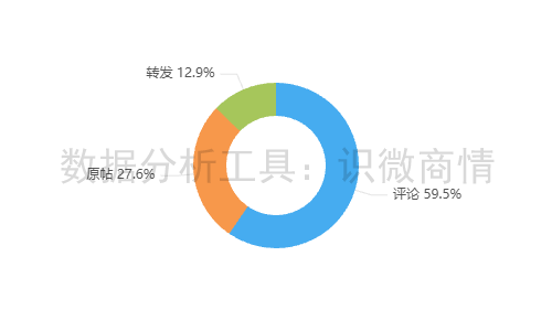该段时间内,有关“瑞幸咖啡错别字杯套事件”的舆情信息类型以评论为主,占59.5%;其次为原帖,占27.6%;转发较少,占12.9%。