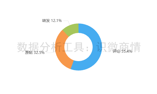 该段时间内,有关“米哈游发布供应商黑名单事件”的舆情信息类型以评论为主,占55.4%;其次为原帖,占32.5%;转发较少,占12.1%。