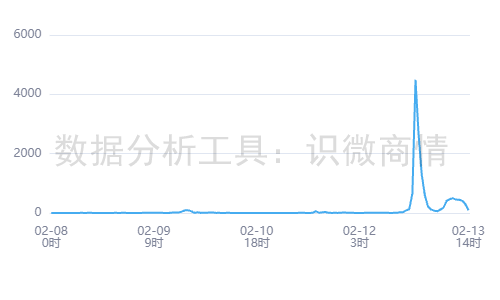 根据识微商情舆情监测系统(<<<点击免费试用)显示,2026年02月08日00时至2026年02月13日14时,有关“胖东来下架全部智利车厘子”的舆情热度约为14,711。通过观察趋势可知,舆情于02月12日21时达到最高峰。