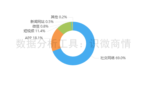 该时段内,有关“胖东来下架全部智利车厘子”的舆情主要集中在社交网络平台,约占69%,其次为新闻APP(约占18.1%),短视频(约占11.4%)。