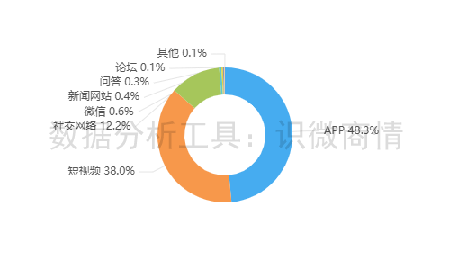 该时段内,有关“绝情臭豆腐请假事件”的舆情主要集中在新闻APP平台,约占48.3%,其次为短视频(约占38.0%),社交网络(约占12.2%)。