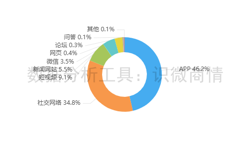 该时段内,有关“林俊旸离职事件”的舆情主要集中在新闻APP平台,约占46.2%,其次为社交网络(约占34.8%),短视频(约占9.1%)。