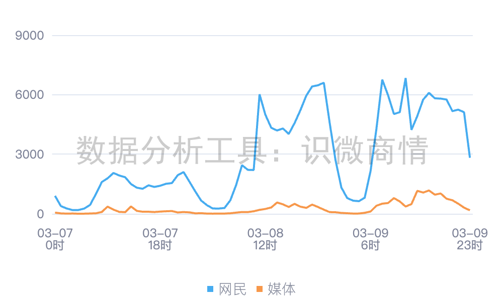 根据识微商情舆情监测系统(<<<点击免费试用)显示,2026年03月07日00时至2026年03月10日00时,境内有关“‘养龙虾’热潮风靡AI圈”的舆情热点约228,066。通过观察趋势可知,媒体舆情于03月09日16时达到最高峰,网民舆情于03月09日12时达到最高峰。