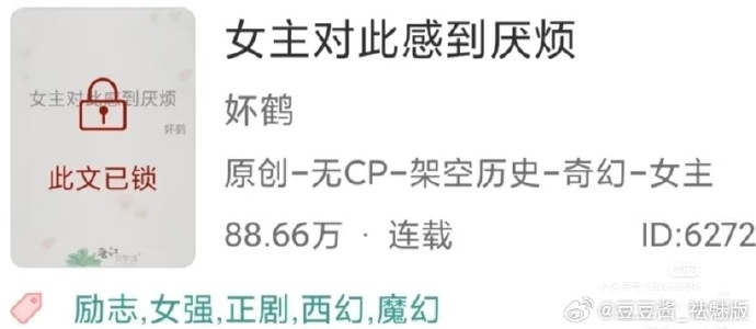 2026年3月23日,部分读者发现网络小说《女主对此感到厌烦》全文被锁,猜测是否因为版权到期。