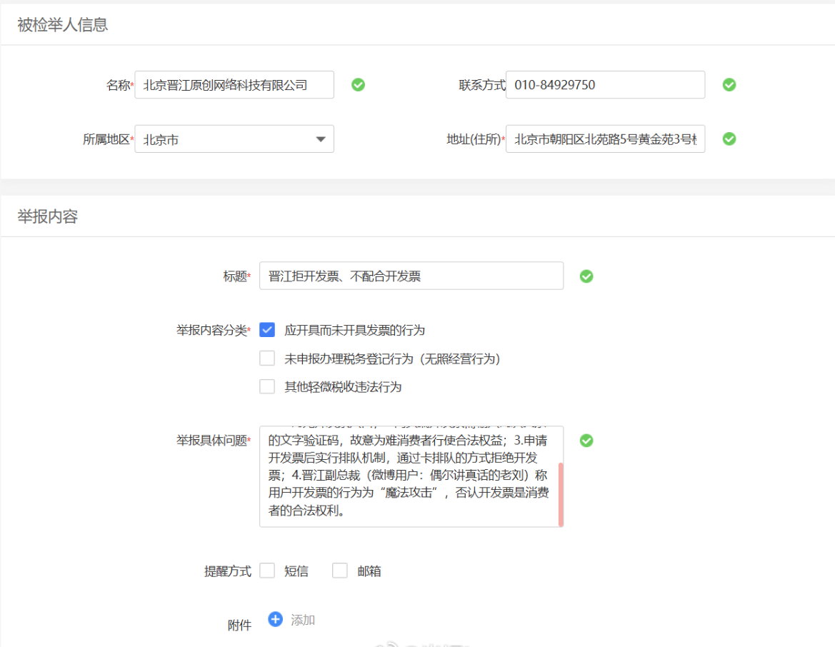 在申请开票过程中,用户还发现晋江APP并无直接开票入口,网页端入口极度隐蔽、流程繁琐,质疑平台长期故意设置障碍。平台部分用户向税务部门举报晋江文学城涉嫌偷税漏税、违反《税收征收管理法》。