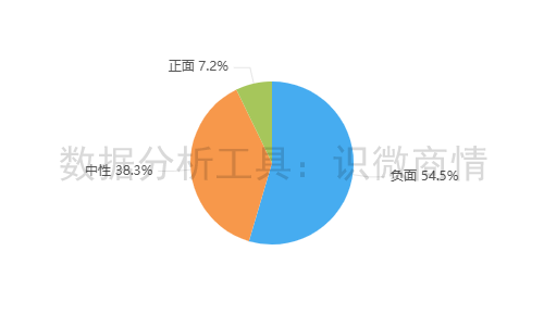 该时段内,有关“晋江禁词老天奶事件”的舆情情感倾向以负面为主,占54.5%;其次为中性舆情,占38.3%。正面舆情较少,占7.2%。
