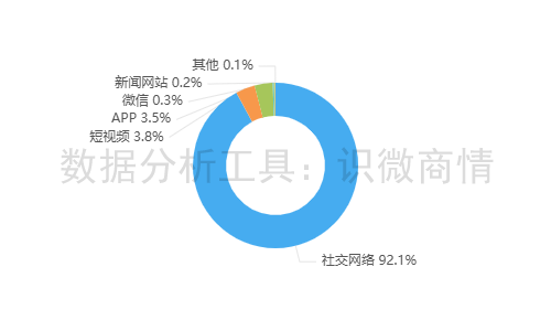 该时段内,有关“鞠婧祎涉税风波”的舆情主要集中在社交网络平台,约占92.1%,其次为短视频(约占3.8%),新闻APP(约占3.5%)。