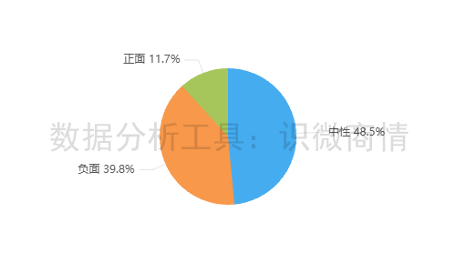 该时段内,有关“网红白冰偷税事件”的舆情情感倾向以中性为主,占48.5%;其次为负面舆情,占39.8%。正面舆情较少,占11.7%。