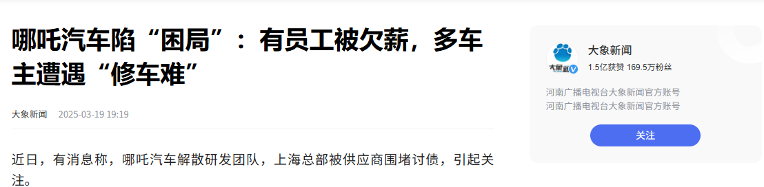 交付延迟与售后敷衍:2025年3月19日大象新闻报道,许多车主购买哪吒汽车后还遇到了“修车难”问题,哪吒汽车武汉麒晟鼎用户中心表示,门店内确有车主花费较长时间等配件的情况,原因为厂家有部分配件为缺货状态,具体到货时间暂时无法确定。