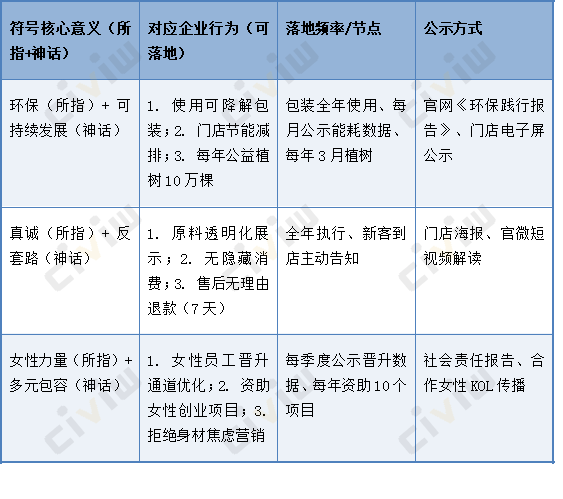 明确符号所传递的核心意义,并对应到具体的企业行为,定期公示践行情况,避免符号意义空洞化。