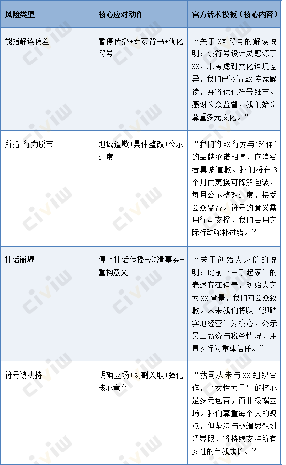 当符号出现解读偏差、行为脱节或意义被劫持时,需按风险类型采取针对性措施,避免危机扩大。