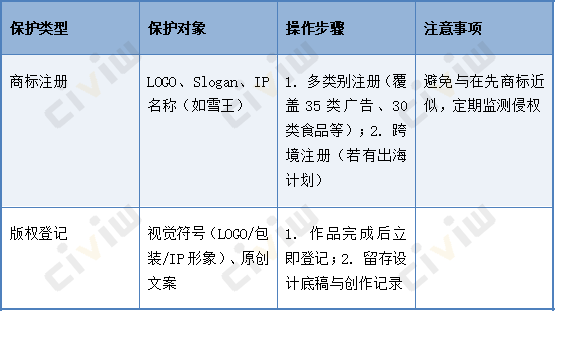 将核心符号在商标、版权、专利等多维度进行注册,覆盖产品、服务、传播等全场景,形成知识产权保护网。