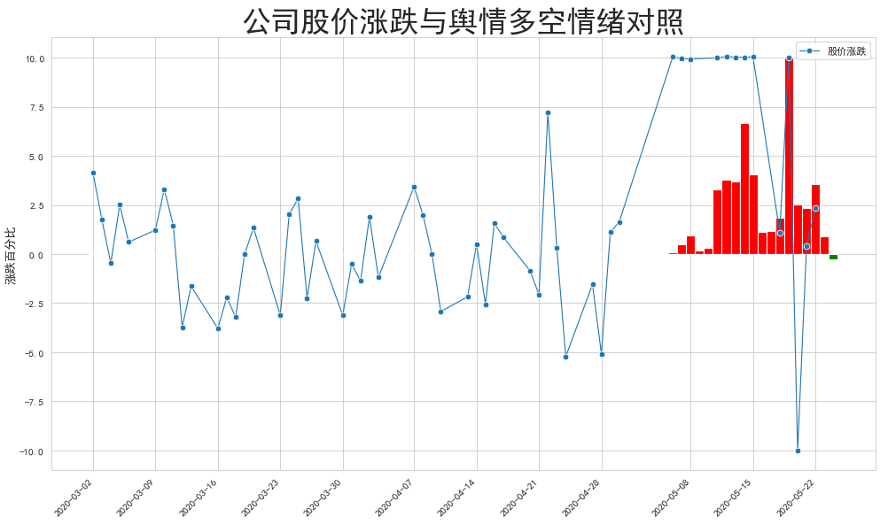 我们将舆情与股价变化进行同期对照如下图,舆情与股价同步上升。