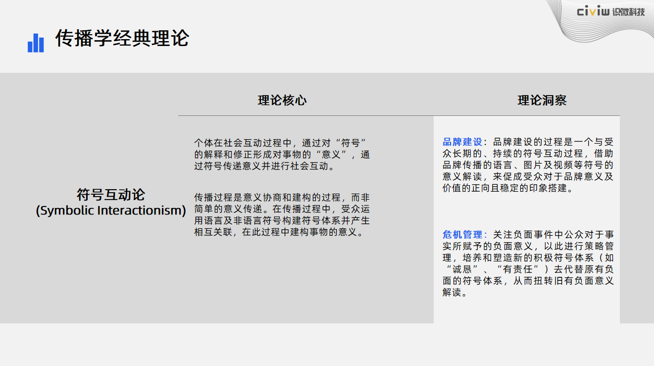 个体在社会互动过程中,通过对“符号”的解释和修正形成对事物的“意义”,通过符号传递意义并进行社会互动。