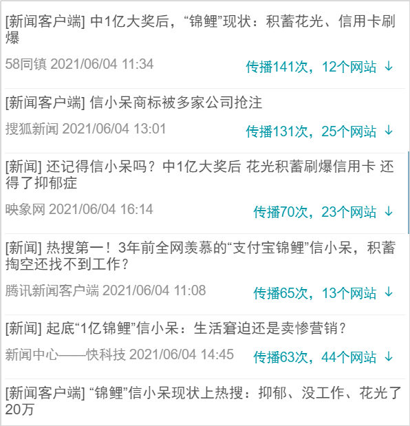 根据识微商情数据监测,最高发布信小呆抑郁视频舆情信息是在6月2日下午,@财经网 发布信小呆近况,没钱没工资,还要考教资。但财经网发布的信息并没有引起网友注意。但根据舆情发展趋势图显示,信小呆抑郁的舆情消息在6月3日上午突然直线上升,瞬间火爆整个互联网圈。这是为什么呢?